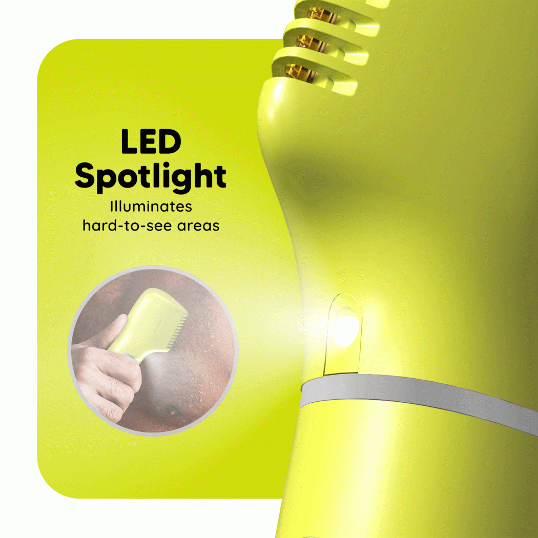 ВОДОУСТОЙЧИВ И LED ПРОЖЕКТОР: Функцията LED ПРОЖЕКТОР и IPX7 рейтинг осигуряват безпроблемно подстригване дори при слаба светлина и под душа, като подобряват прецизността и видимостта.