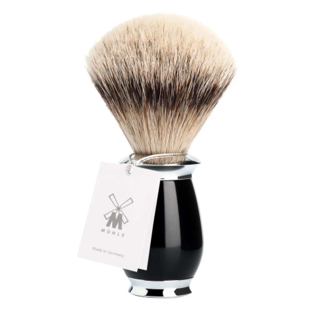 Shaving brush from MÜHLE, silvertip badger, handle material high-grade resin black